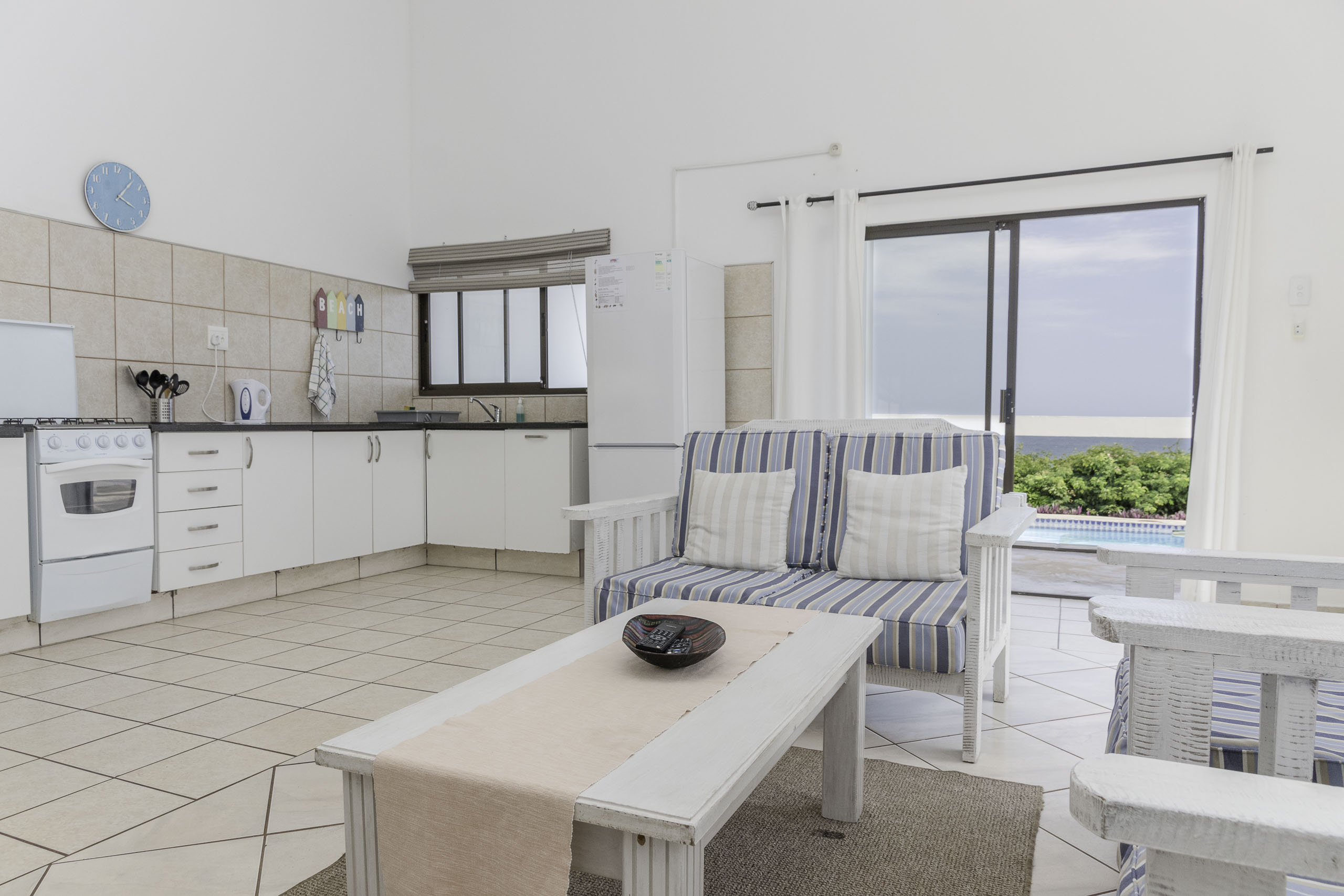 These 2 bedroom apartments have partial views of the ocean because of the coastal bush growing in front of them but the ocean can still be seen and heard! These apartments have 2-3 steps as well as a gentle ramp leading from the covered parking area (1 parking per house). Entry to the apartments is from the front so Casa Raio do Sol I is the more private apartment. There is a braai area and a splash pool. These apartments are mirror images of each other separated by a large wall in the centre.