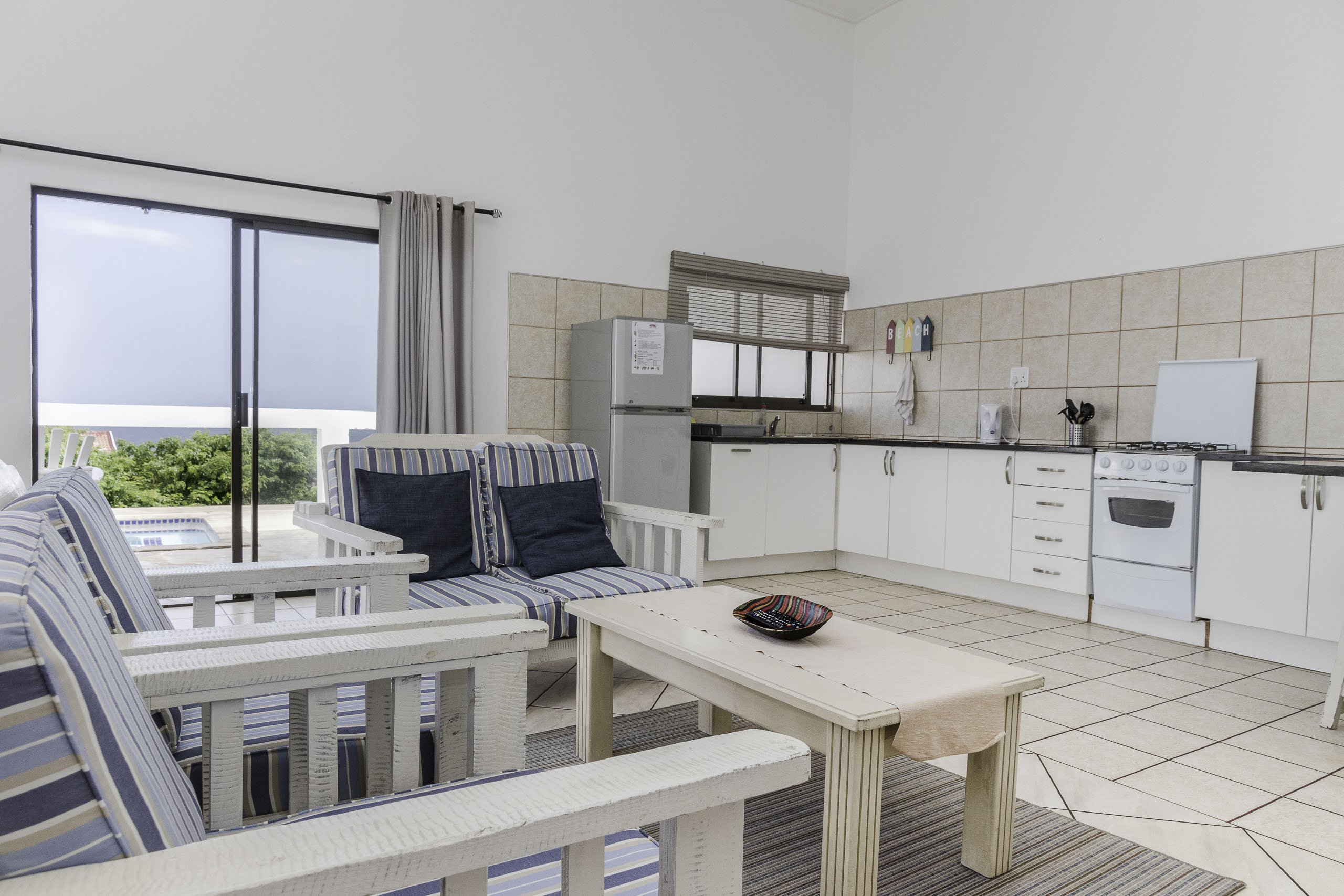 These 2 bedroom apartments have partial views of the ocean because of the coastal bush growing in front of them but the ocean can still be seen and heard! These apartments have 2-3 steps as well as a gentle ramp leading from the covered parking area (1 parking per house). Entry to the apartments is from the front so Casa Raio do Sol I is the more private apartment. There is a braai area and a splash pool. These apartments are mirror images of each other separated by a large wall in the centre.